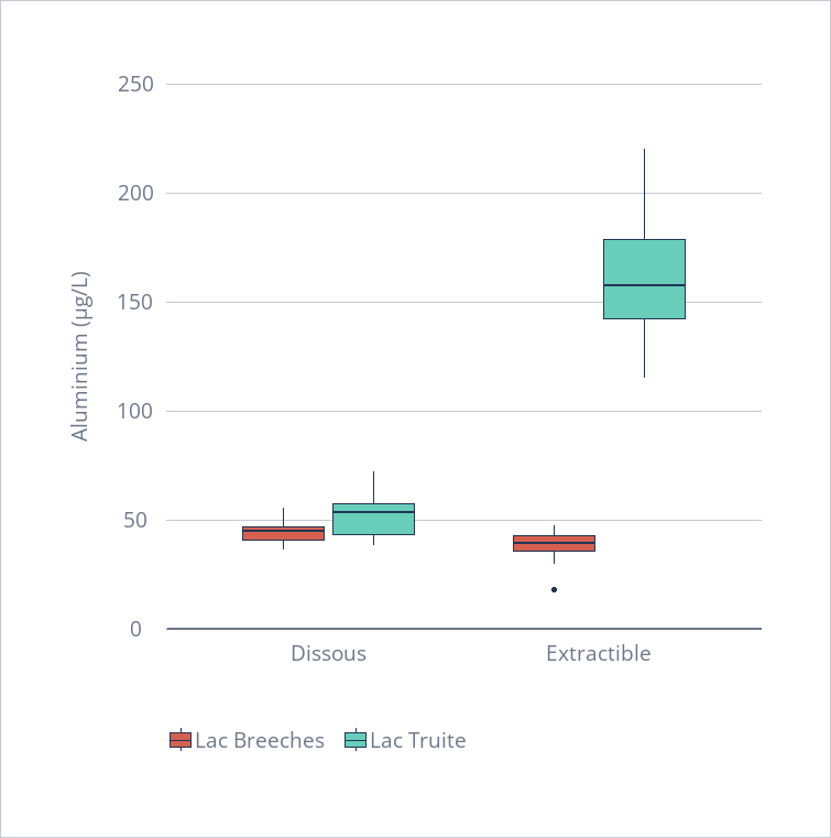 # Variables : Lac, Type de mesure (Dissous ou Extractible), et Aluminium (µg/L)